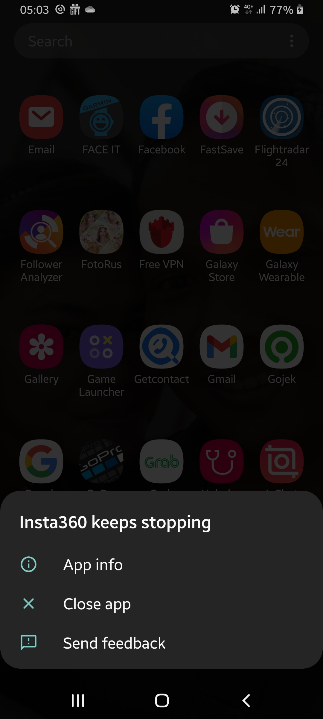 Insta360 app keeps stopping crash