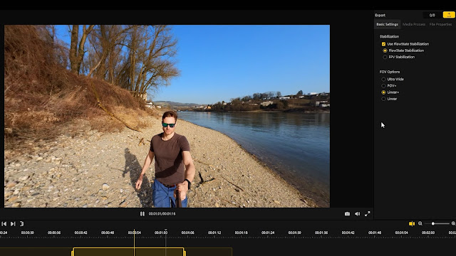 The first one is the"standard video". Here the video comes ready out of the cam with the basic in-camera stabilization, the select ratio, resolution, framerate, field of-view and color profile in the mp4 format.