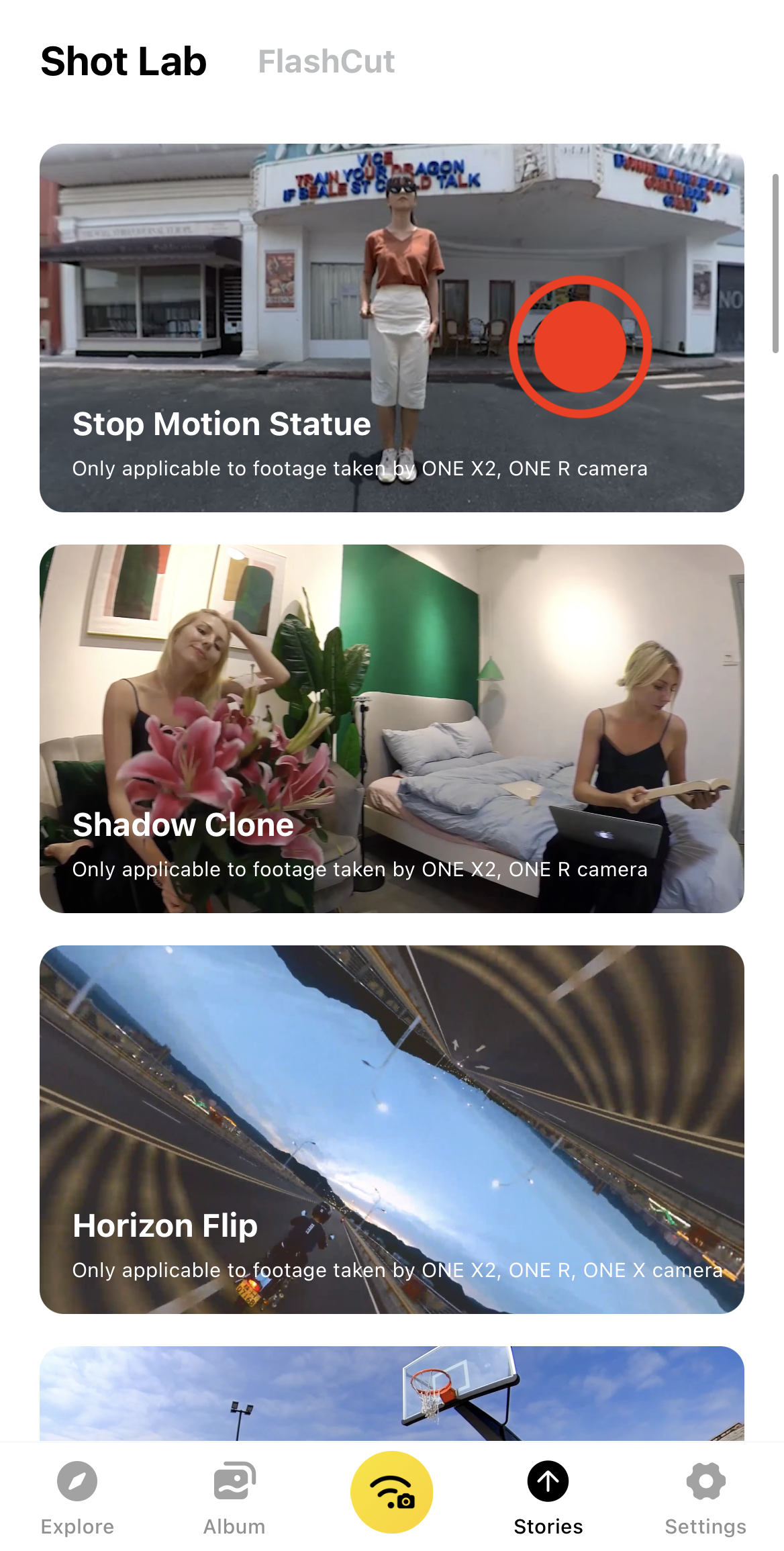 1. Participate in the Insta360 app: Tap "Explore" — Tap the yellow "+" button — Select your shot — Add tag #StopMotionStatue  and share!