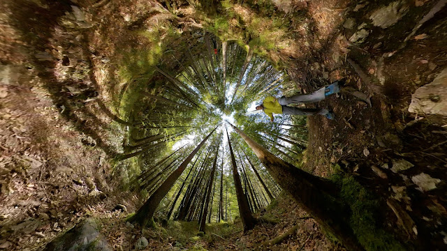 Idea number fourteen is the “top down perspective”. Mount your 360 camera on a telescop stick, extend it and walk around. Point the perspective downwards to get the top-down look. Because of the invisible selfie stick, it looks like a drone is following you around.