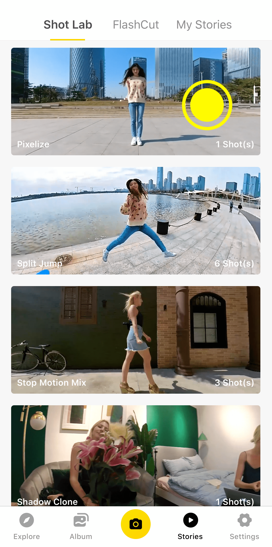 Tap “Stories”-“Shot Lab”-“Pixelize”